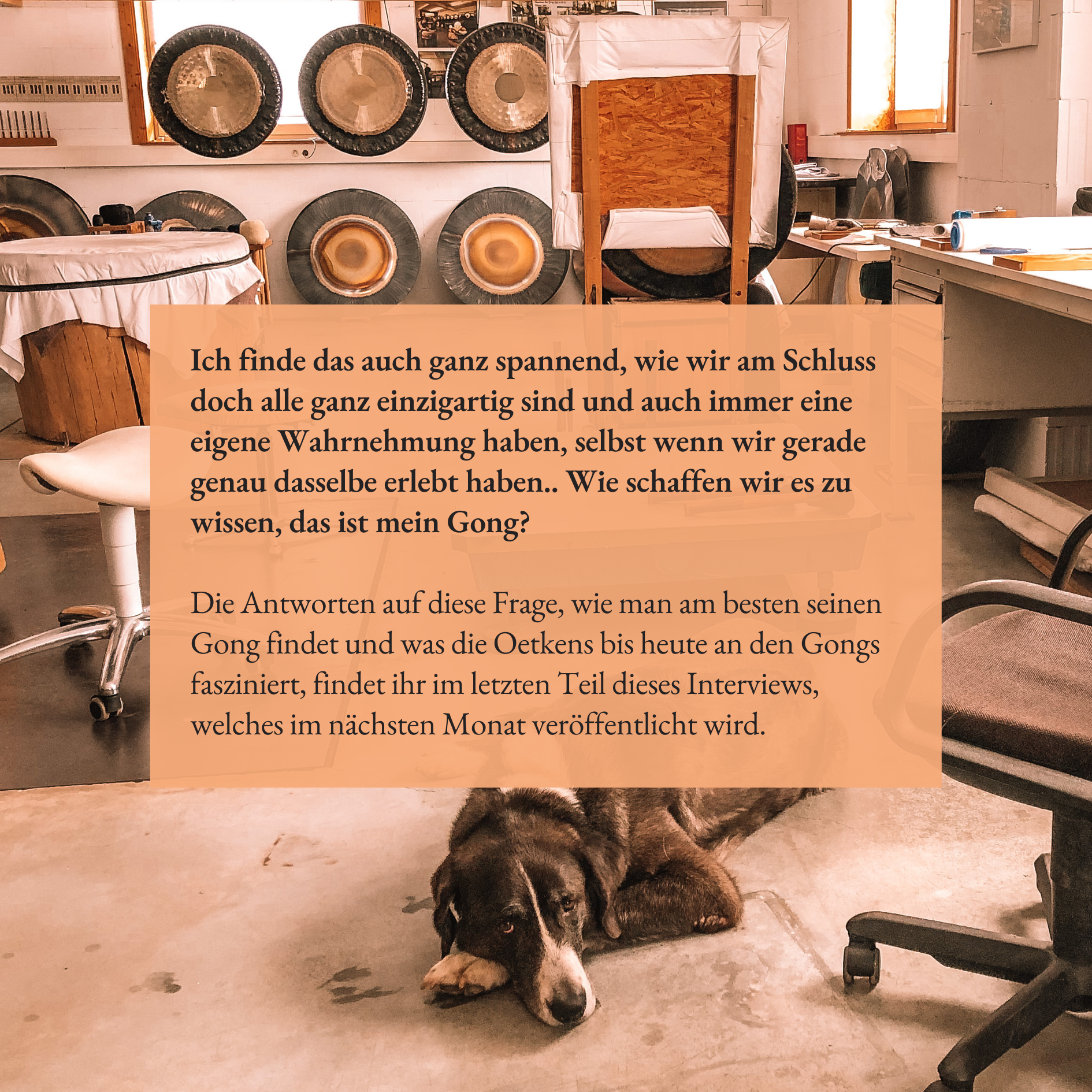 - Die Antworten auf diese Frage, wie man am besten seinen Gong findet und was die Oetkens bis heute an den Gongs fasziniert, findest du im letzten Teil dieses Interviews, welches sobald wie möglich veröffentlicht wird.